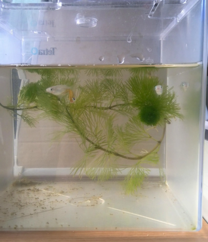 小さい子メダカさん達がエサを突く姿がとても可愛いです。