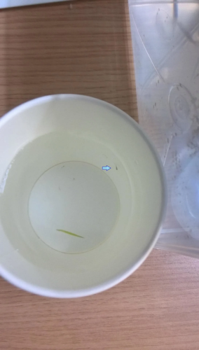 この日は暖かく一気に卵から赤ちゃんメダカが孵化しました。 見えずらいですが、小さい赤ちゃんメダカです。 2015-05-18 16:30:40