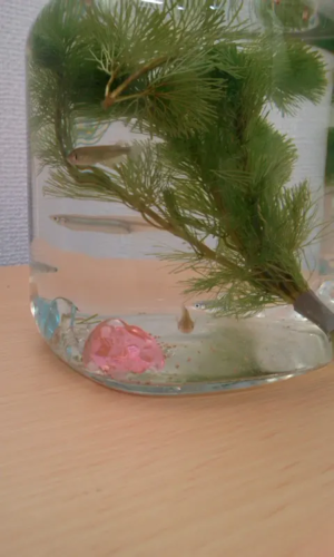 最初にいただいた瓶に入っているメダカ達。 この頃はまだ黒が2匹いたのに。。。 そしてこの頃の私はまだメダカの可愛さに気付いていなかったのです・・・ 2015-05-11 14:45:45